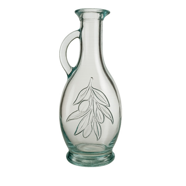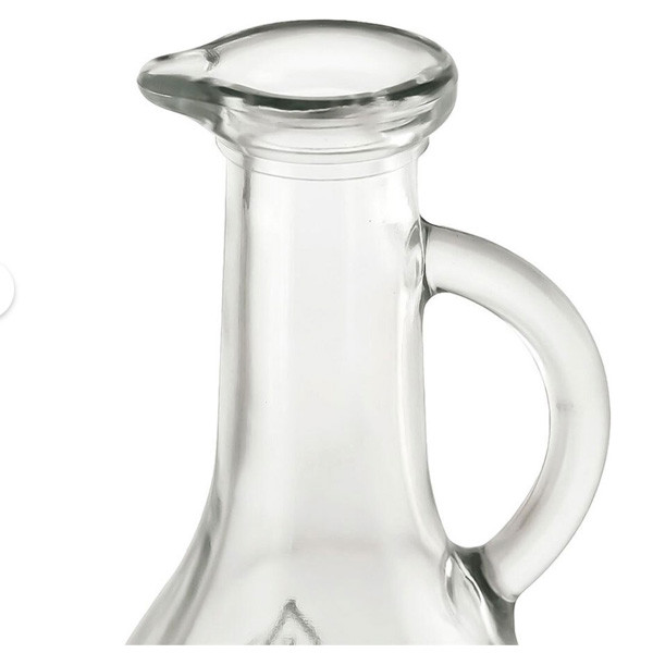 Елегантна пляшка із прозорого скла, прикрашена рельєфним візерунком у вигляді гілки з оливками. Обтічна форма та витончена ручка роблять її не тільки зручною у використанні, але й естетично привабливою. Ідеально підходить для зберігання та подачі оливкової олії, оцту чи інших рідин. Завдяки носику пляшка забезпечує акуратний налив без крапель. Відмінний вибір для кухні, сервірування столу або як подарунок.